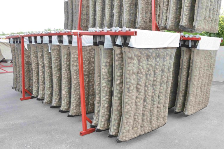 Suitable for 14 standard or 11 wide bags per rack. A total of 1,400 kg of seed potatoes per rack.